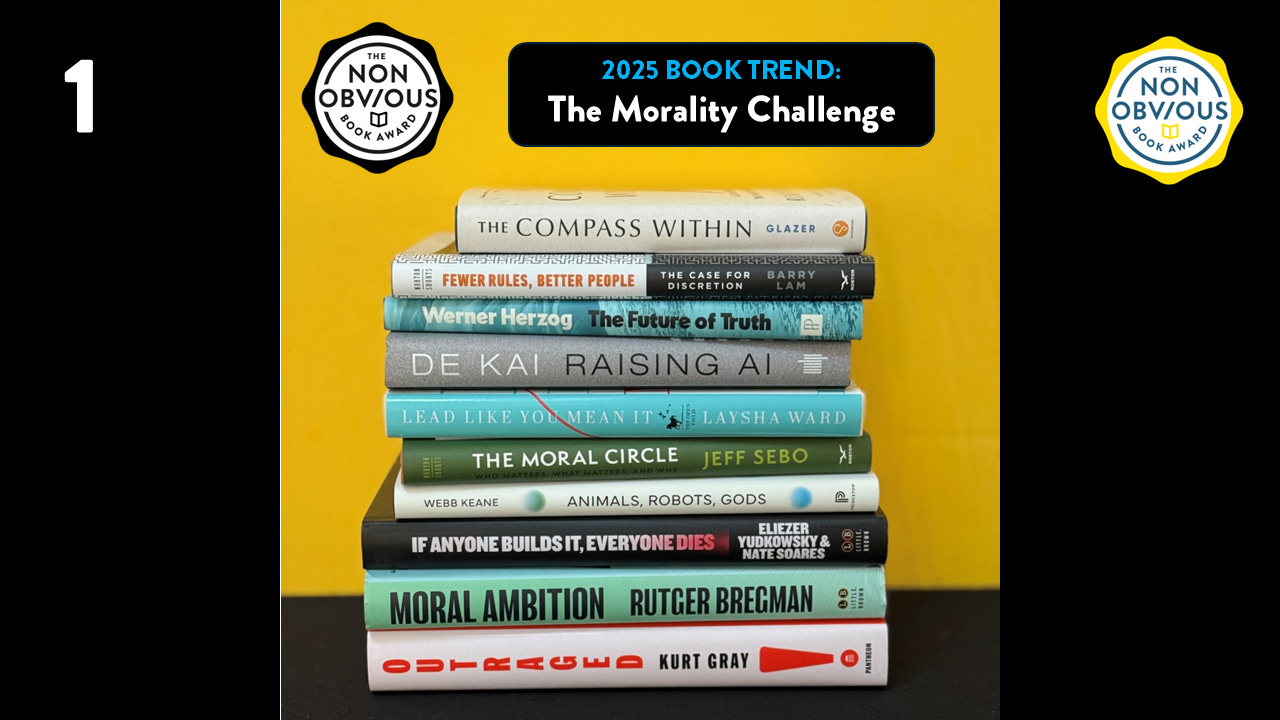 A year ago, as AI started to affect work and life in deeper ways, there were many books that raised the question of how we might save humanity. This year several books posed a clear answer: we need more leaders and organizations alike to prioritize morality in their decision making. These books explore this antidote and offer lessons on how we can act in more morally positive ways.