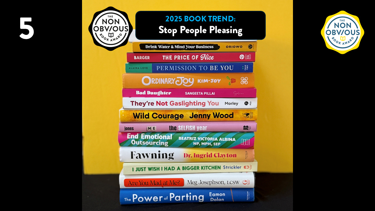 Last year, quiet leadership was big, but this year many books advocated to overcome our more silent tendencies. Too often we resort to people pleasing, silence our inner rebel and prioritize keeping the peace. Several described it as fawning (becoming overly agreeable to avoid conflict) and all of them suggested defiance by worrying less what others think and putting yourself first.